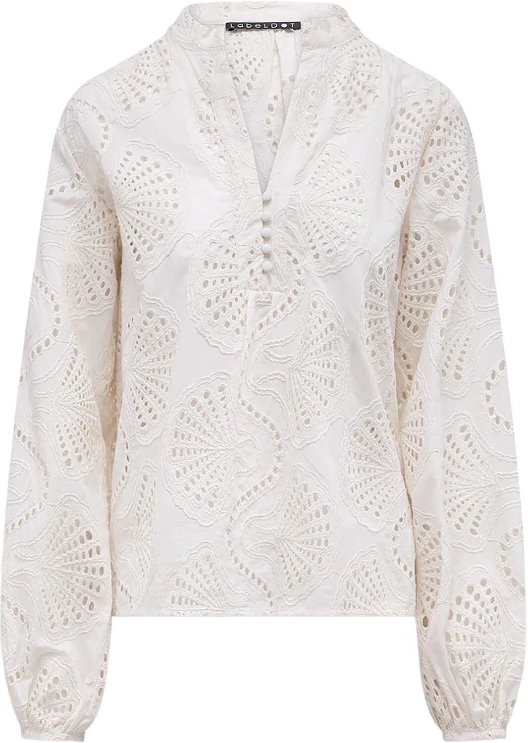 Label Dot Blouse Anneke met broderie anglaise Off White dames