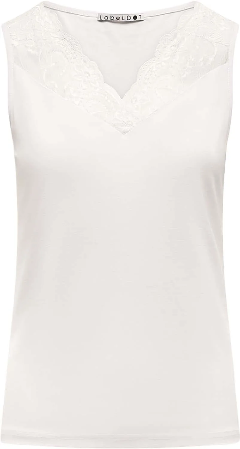 Top Max, top zonder mouw van Label Dot, heeft een V-hals met kanten inzet, een effen afwerking en een regular pasvorm. De mouwloze snit draagt luchtig en valt soepel langs het lichaam. Combineer met een vest of blazer voor een nette, casual set.
