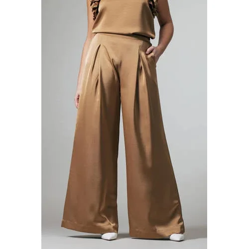Pantalon Rumi van Label Dot is een stijlvolle pantalon met een hoge taille en elastische sluiting. De losse pasvorm en het effen patroon maken deze broek geschikt voor nette gelegenheden. Ervaar comfort en verfijning in één, ideaal voor diverse outfits.