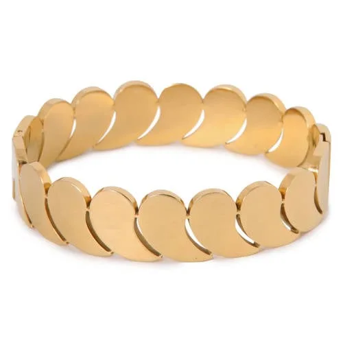 Geef je sieradencollectie een update met deze goudkleurige armband van roestvrij staal van Label Kiki. Het slanke ontwerp en de subtiele glans maken dit dames sieraad geschikt voor elke dag, maar ook passend bij een geklede outfit. De goudkleurige plating geeft een warme uitstraling, terwijl het stevige materiaal ervoor zorgt dat de armband stabiel om de pols valt.Details die het verschil maken Goudkleurige armband met feminine uitstraling, passend bij de 'Feminine' collectie van Label Kiki Gemaakt van roestvrij staal, wat bekend staat om de stevige en kleurvaste kwaliteit Gold plated afwerking voor een duidelijke, goudkleurige glans Niet verstelbaar, waardoor de vorm mooi en stabiel blijft rond de pols Neutrale goudkleur die gemakkelijk combineert met andere sieradenElegant in elke combinatieDeze armband leent zich goed voor laagjes met andere smalle armbanden, maar kan ook solo gedragen worden voor een rustige, verzorgde look. Te dragen bij een blouse, blazer of jurk, maar ook passend naast een horloge. De goudkleur zorgt voor een zachte accentkleur bij zowel lichte als donkere outfits.Label Kiki sieradenstijlLabel Kiki ontwerpt sieraden die aansluiten bij een moderne, vrouwelijke stijl. De collecties draaien om toegankelijke designs die je eenvoudig dagelijks draagt en combineert. Met aandacht voor materiaal en afwerking biedt Label Kiki sieraden die er verzorgd uitzien en praktisch in gebruik zijn.Een armband die je sieradendoos vult met een klassieke, goudkleurige toevoeging.