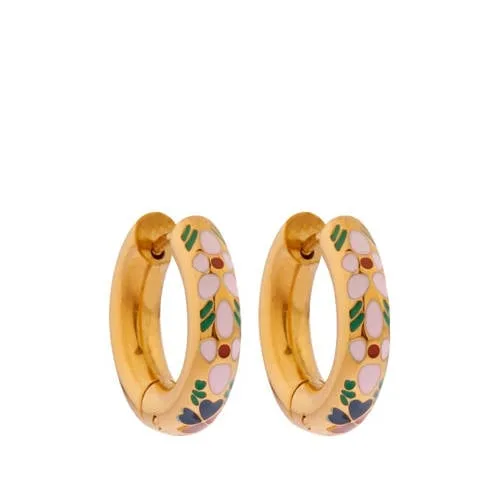 Label Kiki gold plated oorbellen Pink Flower Hoops