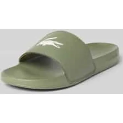 heren badslippers van Lacoste;Model 'Serve Slide 0.0';look: effen;punt van de schoen: rond;Hakvorm: plat;Applicatie: logoprint;sluiting: comfortmodel/open;Zool: gestructureerd