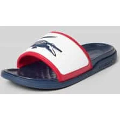 heren badslippers van Lacoste;Model 'Serve Slide 1.0';look: meerkleurig;punt van de schoen: rond;Hakvorm: plat;Applicatie: logo-opschrift;sluiting: comfortmodel/open;Zool: gestructureerd