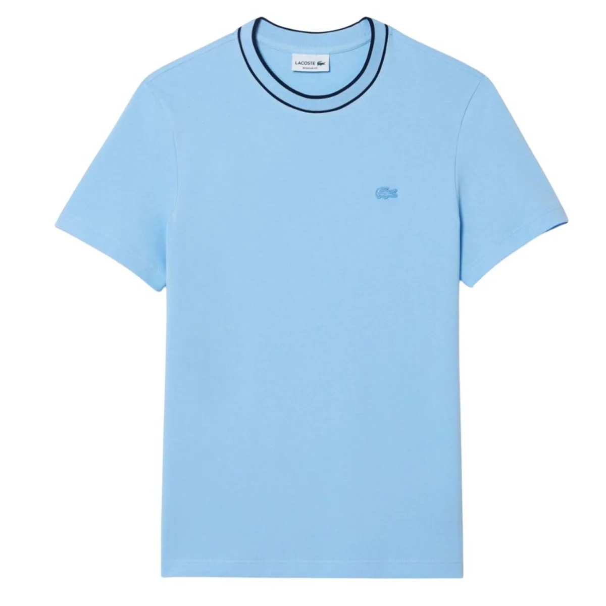 Lacoste Heren Piqu Gestreept Hals T-shirt (Lichtblauw)