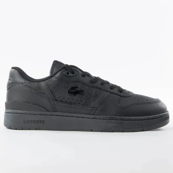 Lacoste herensneakers met T-clip in zwart leer. Originele Lacoste merkschoen – Lacoste streetwear/sportswear design – modieuze Lacoste voor heren, perfect voor dagelijks gebruik – deze zwarte Lacoste sneakers passen perfect bij de rest van je garderobe – comfortabel leer – klassieke veters – T-clip – synthetisch materiaal