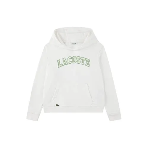 Deze hoodie voor jongens van Lacoste is een praktische basic met een sportieve uitstraling. De witte sweater heeft een capuchon, lange mouwen en een opvallende tekstprint, precies wat veel schoolkinderen en tieners graag dragen. De zachte sweatstof met 80% katoen voelt prettig aan op de huid en biedt genoeg warmte voor frisse dagen.Comfortabele hoodie met sportieve details Gemaakt van 80% katoen en een zachte sweatstof voor een comfortabel gevoel Capuchon voor extra warmte en een stoere look Kangoeroezak aan de voorkant om handen in weg te stoppen of kleine spullen mee te nemen Lange mouwen met boorden zodat de trui goed blijft zitten Witte kleur met tekstprint voor een frisse, preppy stijl Geschikt voor schoolkinderen en tieners, praktisch voor elke dagIdeaal voor school en vrije tijdDeze hoodie is makkelijk te combineren met een jeans, jogpants of korte broek. Handig voor een schooldag, een middag bij vrienden of een ontspannen weekend. De zachte sweatstof biedt genoeg bewegingsvrijheid, zodat spelen, sporten en chillen allemaal kan in dezelfde trui.Lacoste: sportief en herkenbaarLacoste is al jaren bekend om sportieve kleding met een herkenbare, cleane stijl. De focus ligt op comfortabele materialen en tijdloze designs die goed passen in het dagelijks leven van kinderen. Met deze hoodie kies je voor een merk met een lange geschiedenis in sportieve mode en een verzorgde, moderne uitstraling.Een veelzijdige hoodie die gemakkelijk in de dagelijkse garderobe past.