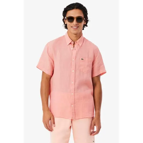 Fris, licht en comfortabel, dit linnen heren overhemd van Lacoste met korte mouw is gemaakt voor warme dagen en ontspannen momenten. De kleur 'Miami' is een zachte roze tint die een zomerse uitstraling geeft, terwijl de regular fit zorgt voor een comfortabele pasvorm. Gemaakt van 100% linnen voelt het materiaal luchtig aan en helpt het om je lichaam koel te houden.Zomerse optie met doordachte details Gemaakt van 100% linnen, een luchtige stof die prettig draagt bij hogere temperaturen Korte mouwen voor een casual, zomerse look Regular fit voor voldoende bewegingsvrijheid zonder te wijd te vallen Button-down kraag die netjes op zijn plaats blijft Borstzak voor een extra sportief accent Effen roze kleur 'Miami' die makkelijk te combineren is met jeans, chino's of shorts Knoopsluiting over de hele lengte voor eenvoudig aan- en uittrekken Wasbaar op 30 graden en warm strijkbaar (2 punten) voor eenvoudig onderhoudCasual outfits voor zonnige dagenDit overhemd is passend voor vakanties, een etentje op het terras of een casual werkdag. Draag het los over een T-shirt voor een relaxte laag, of gesloten op een chino voor een nette maar ontspannen look.Lacoste: sportief erfgoed met moderne twistLacoste staat bekend om het iconische krokodillenlogo en een stijl die sportieve roots combineert met moderne, draagbare mode. De collectie herenoverhemden sluit daar op aan, met aandacht voor pasvorm, materiaal en subtiele details.Een veelzijdig overhemd waarmee je garderobe klaar is voor zonnige dagen.