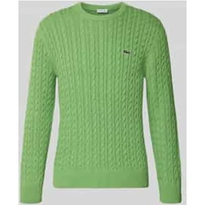 Heren gebreide trui van Lacoste;Look: effen;Pasvorm: Regular Fit;Patroon: Kabelpatroon;Applicatie: Logopatch, Labelstitching;Details: Contrastnaad;Kraagmodel: Crew Neck;Hals: Ronde hals;Mouwvorm: lange mouw;Mouwboord: geribd;Rompzoom: geribd;Materiaalverwerking: Knitwear;Materiaal: Katoenmix