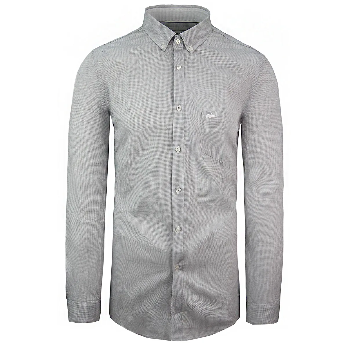 Lacoste Regul Fit Lange Mouw Heren Zwart Wit Button Up Katoenen Overhemd CH9615 525