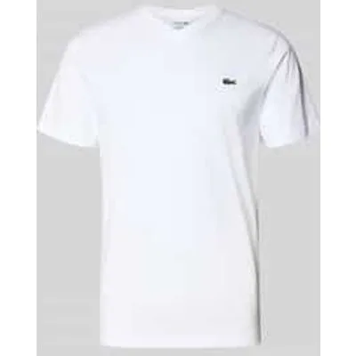 Heren T-shirt van Lacoste;Look: effen;Pasvorm: regular fit;Applicatie: Gestikt logo;Hals: V-hals;Mouwvorm: korte mouw;Materiaal: puur katoen