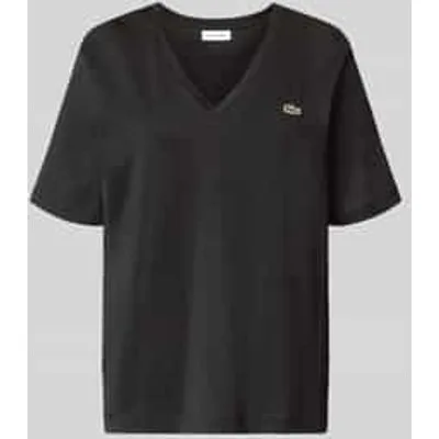 Dames t-shirt van Lacoste;Look: effen;Pasvorm: relaxed fit;Applicatie: Gestikt logo;Hals: V-hals;Materiaal: puur katoen