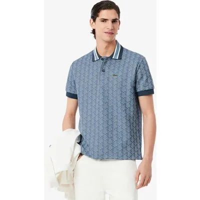 Mens Lacoste ClassicFit Monogram Jacquard Polo Shirt in Blue