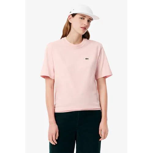 Ga voor een rustige, verzorgde look met dit Lacoste dames T-shirt in lichtroze. De zachte kleur, het minimalistische design en het subtiele krokodillenlogo op de borst maken het een basisstuk dat je gemakkelijk het hele jaar door draagt. Dankzij het gebruik van 100% katoen voelt de stof soepel en comfortabel aan op je huid.Details die je elke dag aantrekt Lichtroze T-shirt met herkenbaar Lacoste logo op de borst Gemaakt van 100% katoen voor een zachte, ademende touch Ronde hals en rechte mouwen voor een tijdloos silhouet Korte mouwen, ideaal voor het voorjaar en zomerse dagen Effen kleur, gemakkelijk te combineren met jeans, rok of short Onderdeel van de daily collectie, geschikt voor alledaagse outfitsMakkelijk te stylen in elke garderobeDraag het lichtroze T-shirt casual met je favoriete jeans en sneakers, of combineer het met een nette broek voor een ontspannen kantoorlook. De rechte pasvorm en de zachte stof zorgen ervoor dat het T-shirt prettig zit, ook als je het de hele dag aan hebt.Lacoste: sportief erfgoed met een moderne twistLacoste staat bekend om het iconische krokodillenlogo en de combinatie van sportieve invloeden en een cleane, moderne stijl. De items zijn ontworpen met aandacht voor detail en kwaliteit, zodat je lang plezier hebt van je kleding. Dit T-shirt past binnen die traditie en vormt een betrouwbare basic in je kledingkast.Een zacht T-shirt dat zich gemakkelijk aanpast aan jouw plannen.