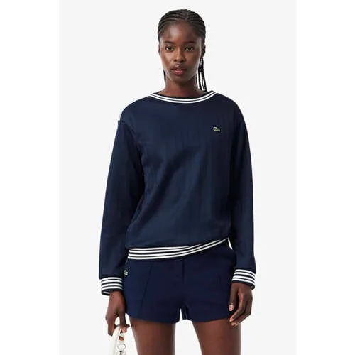 Geef je outfit een sportief verfijnde basis met deze donkerblauwe Lacoste dames top met lange mouwen. De top heeft een tijdloze donkerblauw / ecru combinatie en is onderdeel van de Rebel collectie, die casual comfort en een moderne look samenbrengt. De zachte katoenmix voelt prettig aan op de huid en maakt dit een fijn item voor elke dag in het voorjaar.Details die het verschil maken Donkerblauw / ecru kleurstelling voor een rustige, makkelijk te combineren look Lange, rechte mouwen die recht langs de armen vallen Boothals die de halslijn subtiel accentueert Effen design met herkenbaar Lacoste logo voor een sportieve touch Gemaakt van een zachte katoenmix die soepel meebeweegt Geen zakken voor een strakke en nette uitstraling Onderdeel van de Lacoste Rebel collectie voor damesCasual styling voor elke dagDeze top past goed bij een rechte jeans, een chino of een korte rok. Draag er sneakers onder voor een relaxte weekendlook of combineer met nette loafers voor een meer geklede stijl. Ideaal voor frisse lentedagen, op kantoor of tijdens een dagje weg.Lacoste: sportief erfgoed met stijlLacoste staat bekend om de combinatie van sportieve roots en een moderne, stijlvolle uitstraling. Het merk werkt met herkenbare, heldere ontwerpen en comfortabele materialen, zodat je je de hele dag prettig voelt in wat je draagt.Een veelzijdige top die moeiteloos aansluit bij jouw dagelijkse garderobe.