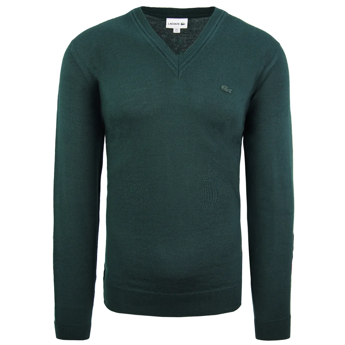 Lacoste Lange Mouw Heren Groene Pullover V-Hals Wollen Trui AH2987 YZP