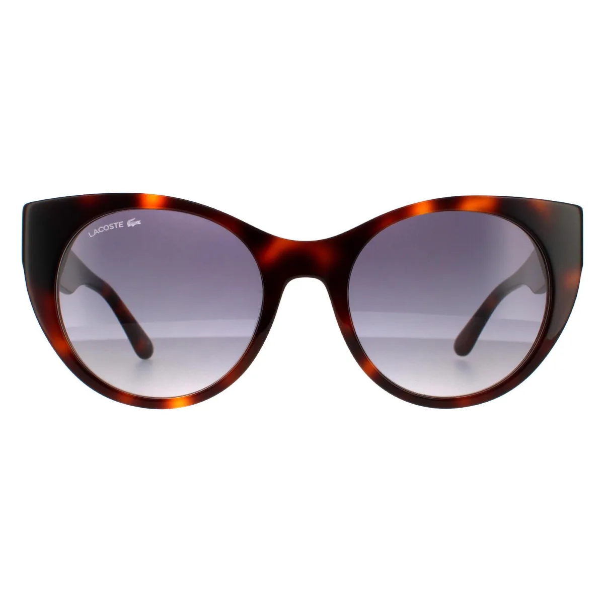 Lacoste zonnebrillen L913S 214 Havana Blue Gradient zijn een gewaagd kattenoogontwerp gemaakt van dikke acetaat en hebben metalen plaque gegraveerd met het Lacoste -logo langs de bovenkant van de tempel.