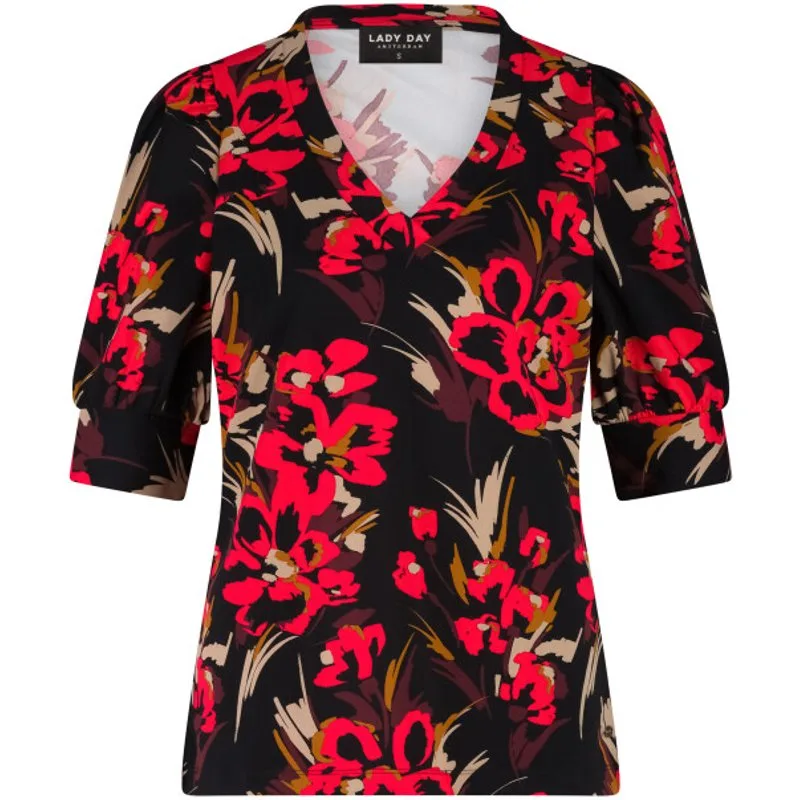 LADY DAY Alice vind je nu op To Be Dressed. Prachtig en uniek item van premium travelkwaliteit en gemaakt van de volgende materialen: 80%polyamide/20%EA. De Alice is een rechte top met V hals. Het item heeft middel korte pofmouwen en aangesloten boord.