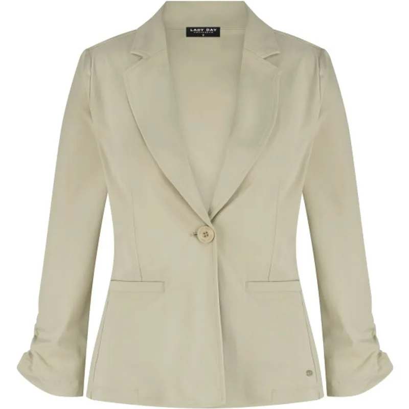 LADY DAY Bali vind je nu op To Be Dressed. Prachtig en uniek item van premium travelkwaliteit en gemaakt van de volgende materialen: 80% Polyamide 20% EA. De blazer Bali is een kort model een heeft een getailleerde pasvorm. Het item is single breasted en heeft paspelzakken en een knoop voorop. De mouwen zijn driekwart en de onderkant van deze mouw is licht gesmokt.