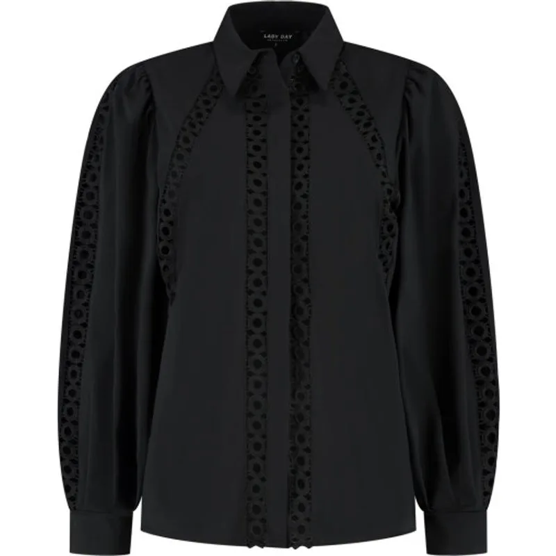 LADY DAY Emmeline vind je nu op To Be Dressed. Prachtig en uniek item van premium travelkwaliteit en gemaakt van de volgende materialen: 80%polyamide/20%EA. De blouse Emmeline is een doorgeknoopt rechtvallend model met kraag. Het item heeft lange mouwen en smalle manchet. Op de mouwen en voorkant van de blouse lopen smalle stroken met opengewerkt borduur.