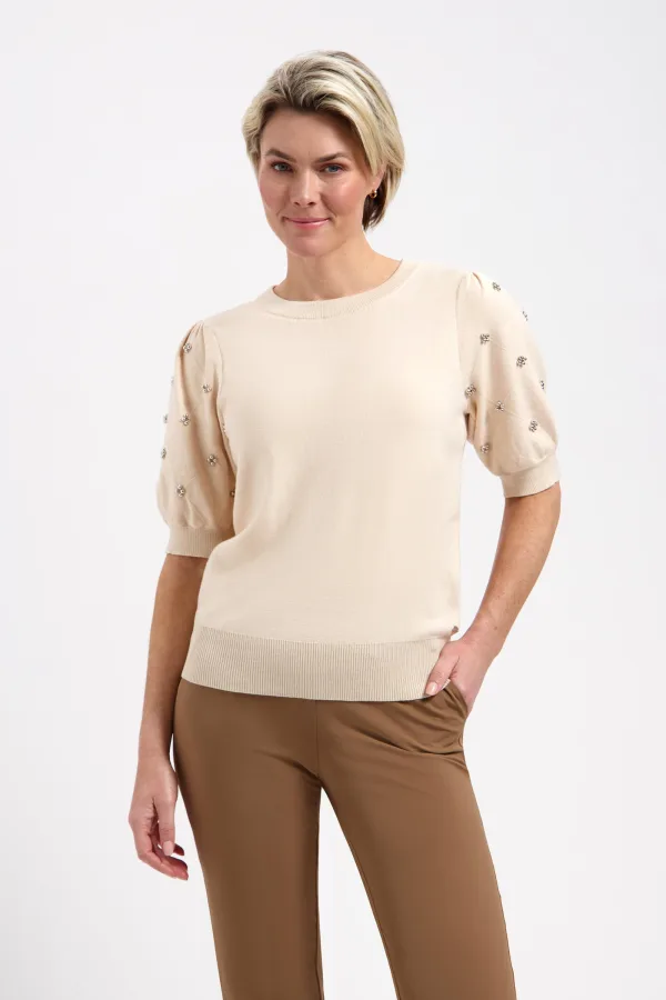 LADY DAY Jolie SSL vind je nu op To Be Dressed. Prachtig en uniek item van premium travelkwaliteit en gemaakt van de volgende materialen: 50%viscose/30%polyamide/20%polyester. De Jolie is een fijn gebreide trui met ronde hals. Het item heeft korte wat wijde mouwen voorzien van mooie kralen