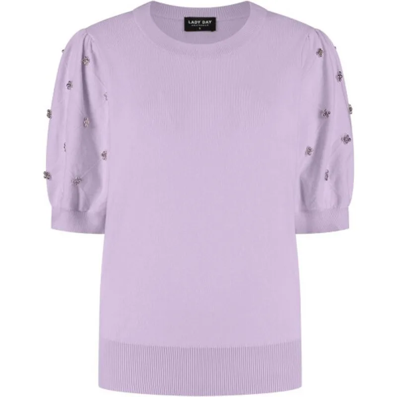 Voor een frisse, vrouwelijke look is deze lila gebreide trui met korte mouw voor dames van Lady Day een praktische basis. De korte lengte valt net boven de heup, waardoor de trui goed combineert met een hoge taille jeans, rok of pantalon. De effen lila kleur geeft meteen een lichte en moderne uitstraling, ideaal voor het voorjaar en lichte laagjes.Licht gebreid comfort in lila Gemaakt van 50% viscose, 30% polyamide en een zachte, soepele vezel voor een prettig draaggevoel. Korte mouw en kort model, perfect voor de lente of om onder een jasje te dragen. Ronde hals en rechte mouwen voor een rustige, vrouwelijke uitstraling. Effen kleur zonder zakken, waardoor de trui eenvoudig te stylen is. Gebreide stof die zacht aanvoelt op de huid.Ideaal voor dagelijkse outfitsDeze trui past goed in je dagelijkse garderobe. Combineer met een hoge taille jeans en sneakers voor een ontspannen dag, of met een nette broek en loafers voor een meer geklede look. Door de korte mouwen is de trui ook fijn op mildere dagen of in een verwarmde kantooromgeving.Lady Day: vrouwelijke stijlen voor elke dagLady Day ontwerpt items met een vrouwelijke uitstraling, die makkelijk te combineren zijn en goed aansluiten bij het dagelijkse leven. Met aandacht voor pasvorm en draagcomfort biedt Lady Day mode die je eenvoudig in je bestaande kledingkast opneemt.Een zachte, lila toevoeging aan je garderobe waar je het hele seizoen plezier van hebt.