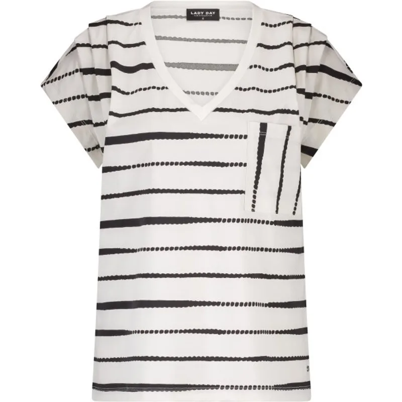 LADY DAY Kat vind je nu op To Be Dressed. Prachtig en uniek item van premium travelkwaliteit en gemaakt van de volgende materialen: . De top Kat is recht model met V-hals en een borstzak voorop. De top heeft korte mouwen en plooien op de schouders.