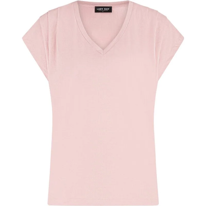 LADY DAY Kathy vind je nu op To Be Dressed. Prachtig en uniek item van premium travelkwaliteit en gemaakt van de volgende materialen: . De top Kat is recht model met V-hals. De top heeft korte mouwen en plooien op de schouders.