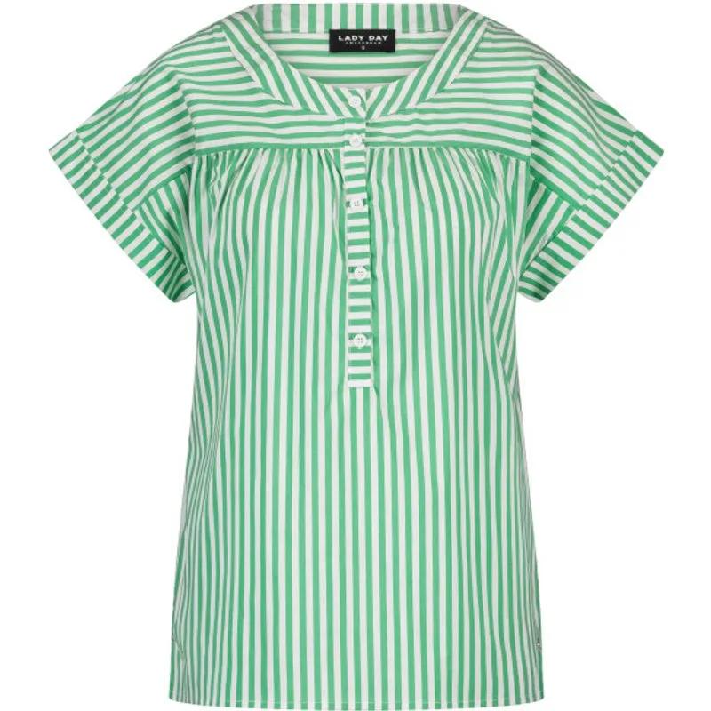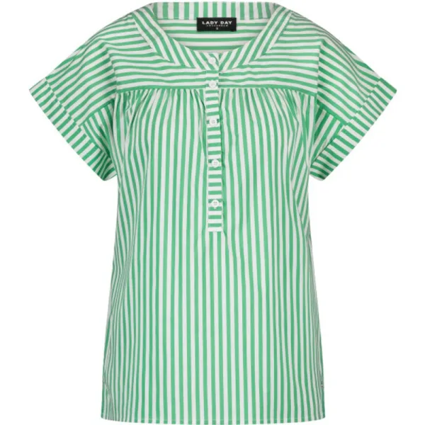 LADY DAY Lina vind je nu op To Be Dressed. Prachtig en uniek item van premium travelkwaliteit en gemaakt van de volgende materialen: . De blouse Lina is een rechte blouse met aangeknipte mouw en ronde hals. Knoop sluiting tot halverwege de blouse. Gathering op voor en achterkant.