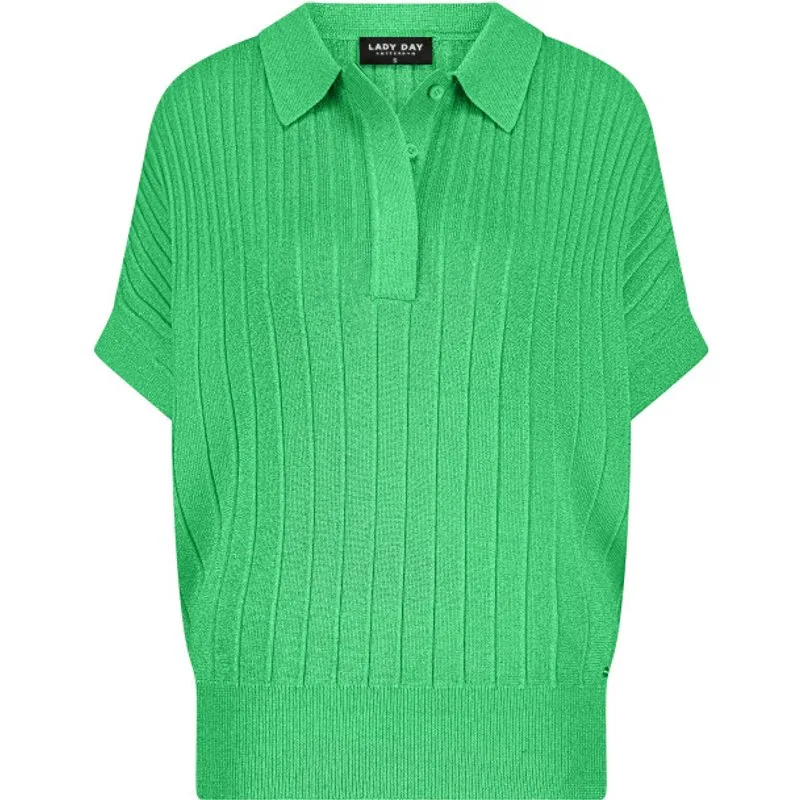 LADY DAY Myrle vind je nu op To Be Dressed. Prachtig en uniek item van premium travelkwaliteit en gemaakt van de volgende materialen: 85%vi/15%pes. De top Myrle is een fijn gebreide top met lurex. Het is een wijdvallend model met platte kraag en placket met knopen.