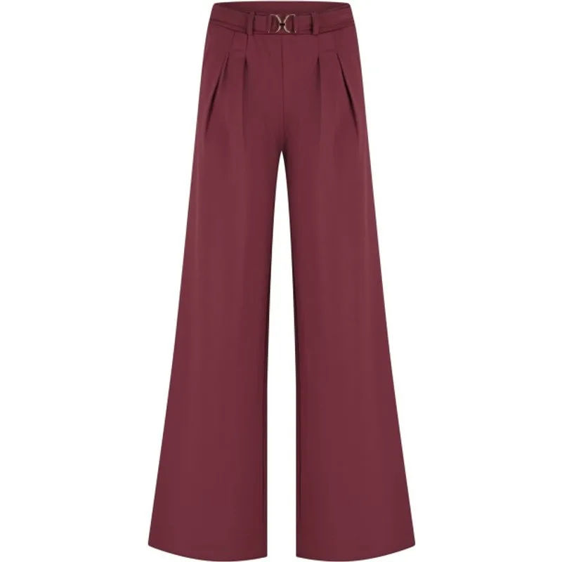 De Pearl is een lange broek met recht vallende pijpen. De broek is voorzien van een bandplooi en riemdetail. De broek is voorzien van steekzakken voor en sier paspelzakken achter. Leuk te dragen met verschillende items van Lady Day. Materiaal 80%polyamide/20%Elastaan Wide leg Valt goed op de maat