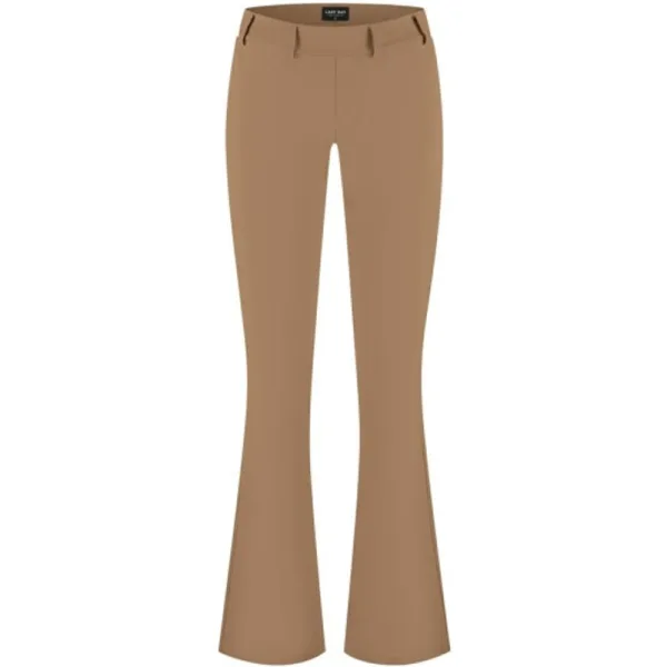 De Poppy broek is een stijlvolle flared broek met een comfortabele pasvorm. De achterzijde van de tailleband is voorzien van elastiek, wat zorgt voor extra draagcomfort en een mooie aansluiting. Rondom de tailleband bevinden zich riemlussen, zodat je de broek eenvoudig kunt combineren met je favoriete riem. Aan de voorzijde heeft de broek praktische steekzakken en aan de achterkant stijlvolle klepzakken voor een elegante uitstraling. Materiaal: 80% polyamide 20% elastaa Klepzakken Flared pijp
