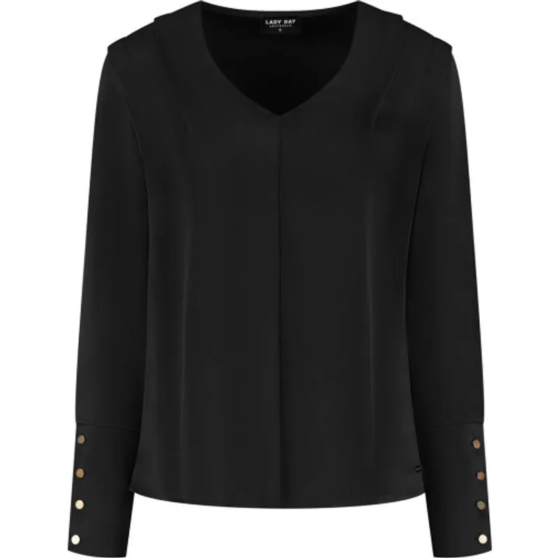 LADY DAY Sheri vind je nu op To Be Dressed. Prachtig en uniek item van premium travelkwaliteit en gemaakt van de volgende materialen: 100%polyester. De Sheri is een top met lange mouwen en V-hals. Het item heeft een satijnen look en mooie plooien aan voor- en achterzijde over de schouders. De top heeft een lang manchet met gouden knoopjes.