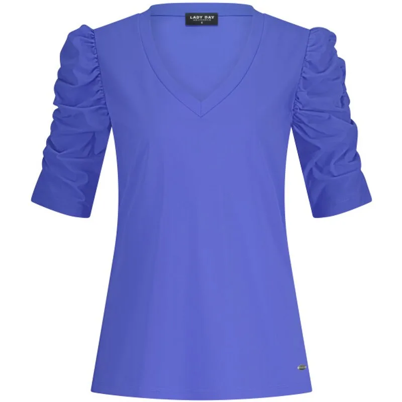 LADY DAY Tigger vind je nu op To Be Dressed. Prachtig en uniek item van premium travelkwaliteit en gemaakt van de volgende materialen: 80% Polyamide 20% Elastane. De top Tigger heeft een V-hals met een driekwart gesmokte mouw. De top is een aangesloten model.