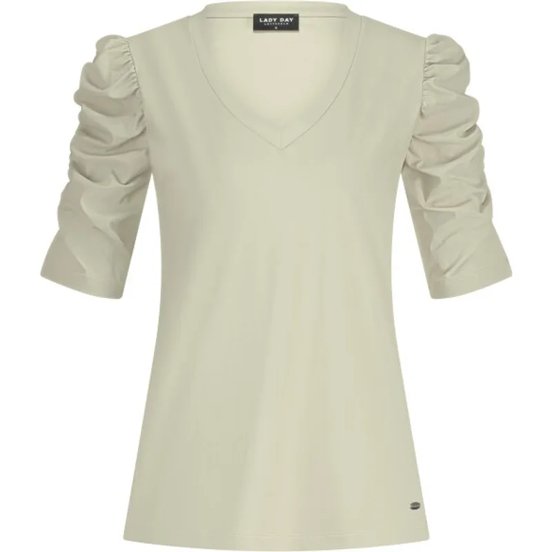 LADY DAY Tigger vind je nu op To Be Dressed. Prachtig en uniek item van premium travelkwaliteit en gemaakt van de volgende materialen: 80% Polyamide 20% Elastane. De top Tigger heeft een V-hals met een driekwart gesmokte mouw. De top is een aangesloten model.