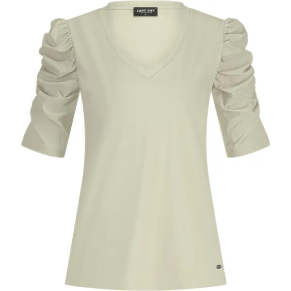 LADY DAY Tigger vind je nu op To Be Dressed. Prachtig en uniek item van premium travelkwaliteit en gemaakt van de volgende materialen: 80% Polyamide 20% Elastane. De top Tigger heeft een V-hals met een driekwart gesmokte mouw. De top is een aangesloten model.