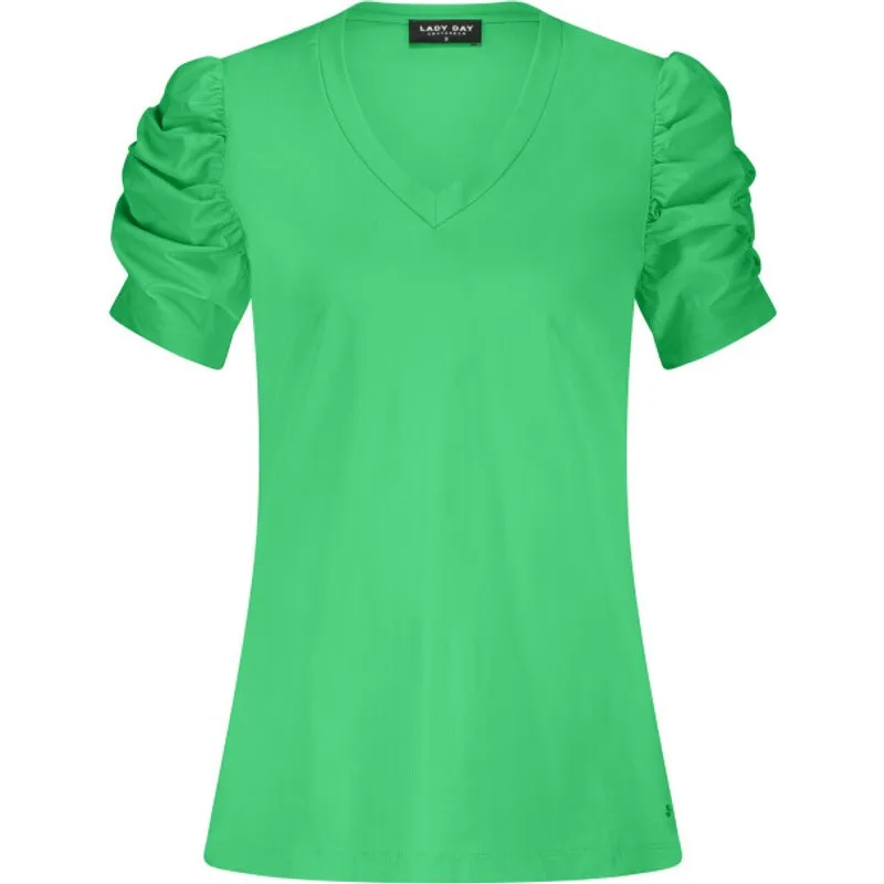 LADY DAY Toya vind je nu op To Be Dressed. Prachtig en uniek item van premium travelkwaliteit en gemaakt van de volgende materialen: 80% polyamide 20% ea. De top Toya is een recht vallende, top met V-hals. De top heeft driekwartmouwen met kleine plooien aan de bovenkant.