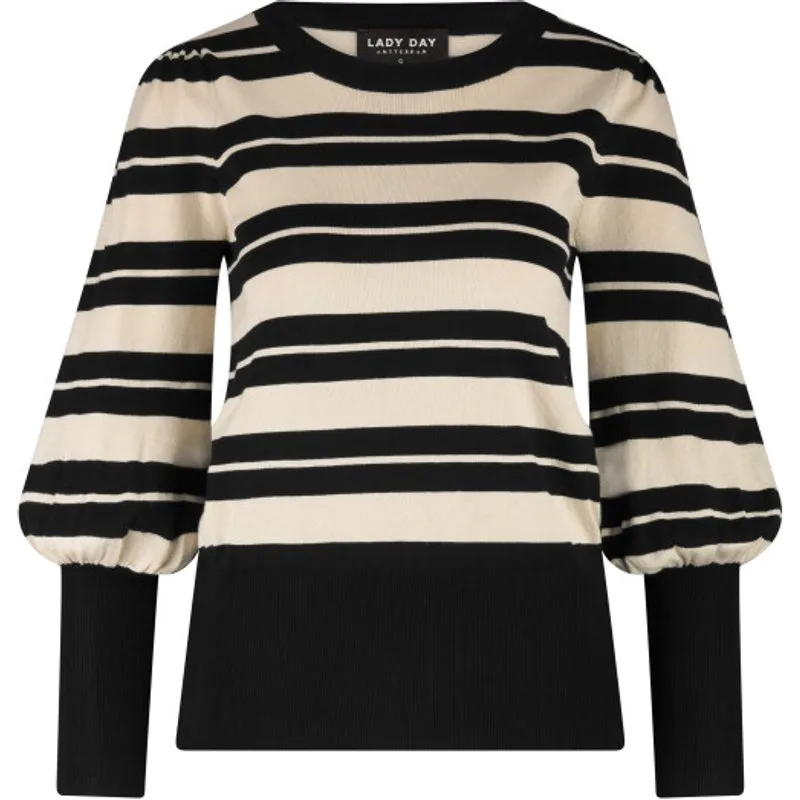 LADY DAY Tracy Stripe vind je nu op To Be Dressed. Prachtig en uniek item van premium travelkwaliteit en gemaakt van de volgende materialen: 85%viscose/15%polyester. De Tracy Stripe is een licht gebreide trui met ronde hals. Het item is voorzien van lange mouwen met pof en heeft lange manchetten.