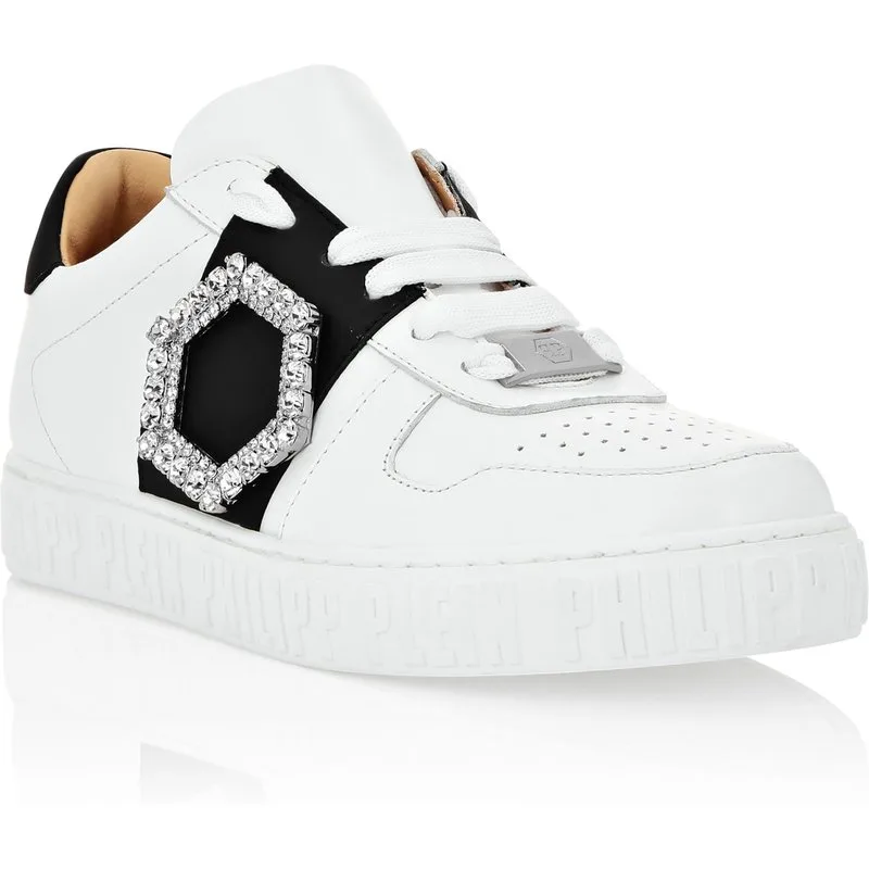 Voeg wat glamour toe aan een basic outfit met deze tweekleurige leren lo-top sneakers. Bekijk de details. Tweekleurig nappaleren bovenwerk Jewel Hexagon op het buitenste kwart Hot-stamped PP Hexagon op de verdikte tussenzool Gegoten buitenzool Gewatteerd en gewatteerd met uitneembare binnenzool