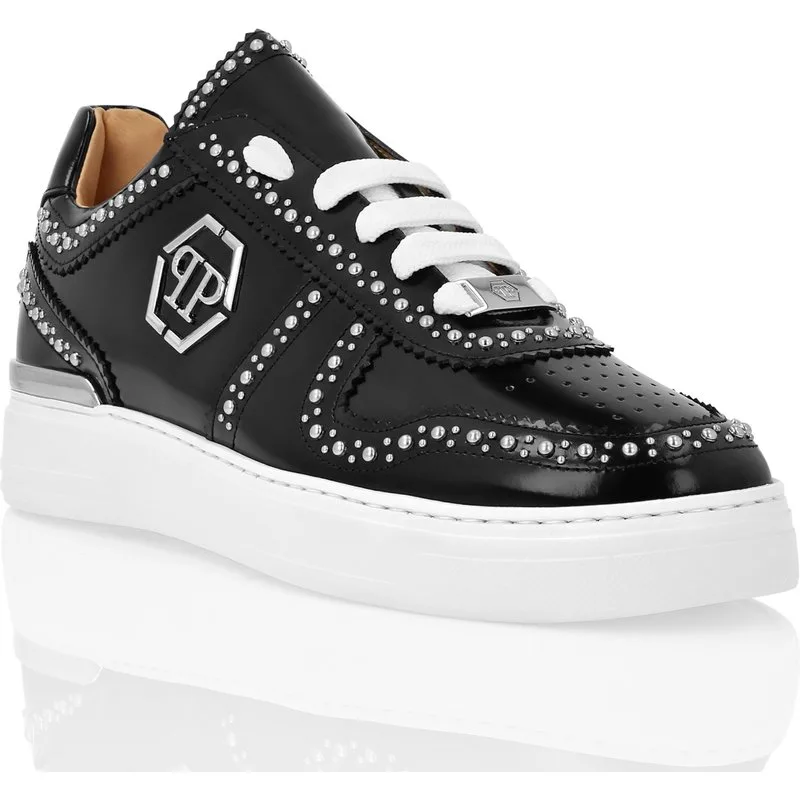 Elegant uniqueness for your free time with these leather Hexagon lo-top sneakers. Check out the details. Brushed calf skin upper Studs application Lacing matching with the collar Metal PP Hexagon on the outer quarter Moulded outsole Inner lining and removable insole
