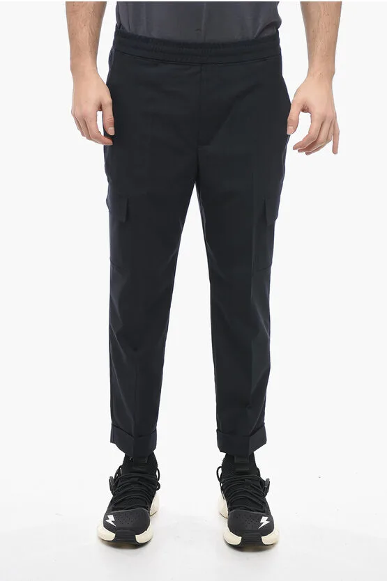 Stel Notificatie voor Product in: Lage taille REM cargobroek van een mix van scheerwol in blauw - €274,50