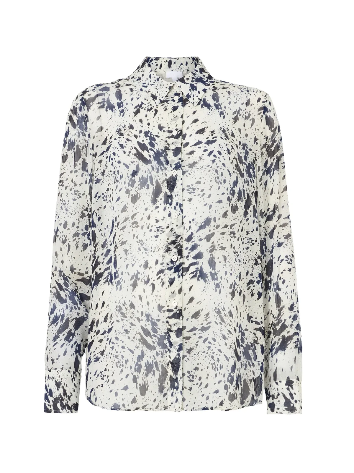 Blouse type: Klassieke blouse; Design: Gevoerde zoom/rand, Placket; Type sluiting: Knoopsluiting; Materiaal: Viscose; Motief: Dierenprint; Kraag: Kentkraag; Details: Plooien; Extra's: All-over patroon, Crinkle look; Pasvorm: Normale pasvorm; Armlengte: Lange mouw; Lengte: Normale lengte