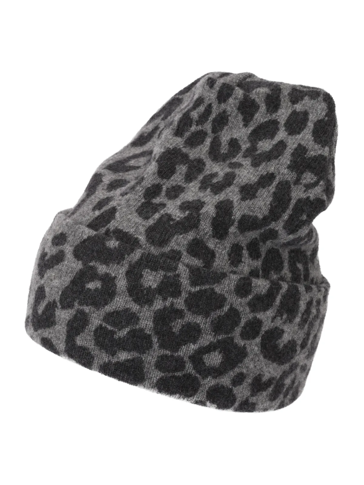 Design: Recht model, Omgeslagen zoom; Materiaal: Knitwear; Motief: Dierenprint; Type muts: Beanie; Extra's: All-over patroon, Fully fashioned