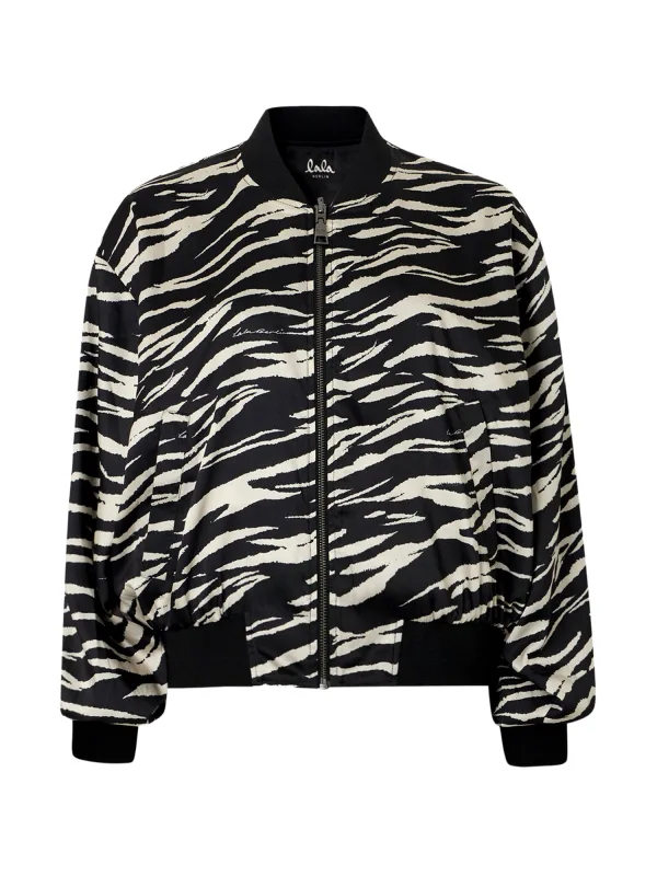 Design: Geribbelde kraag, Overcut schouder; Type sluiting: Ritssluiting; Type jas: Blouson; Voering: Licht gevoerd; Materiaal: Satijn; Motief: Dierenprint; Extra's: All-over patroon, Voelt zacht aan; Pasvorm: Losse pasvorm