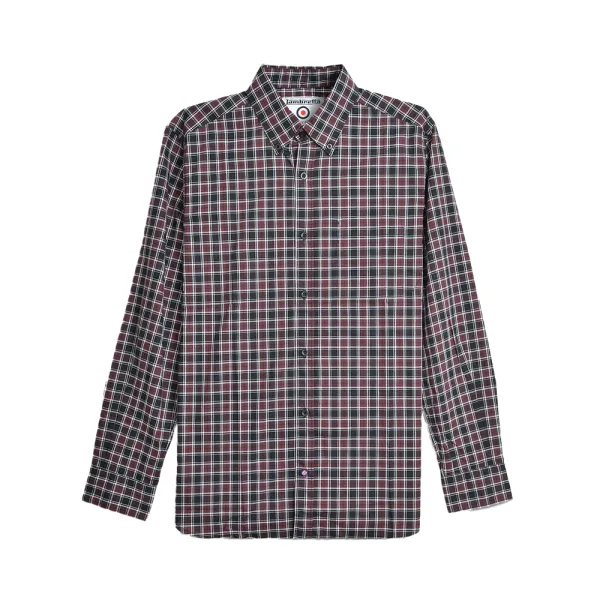 Lambretta Geruit herenhemd met lange mouwen (Bourgogne/Zwart)