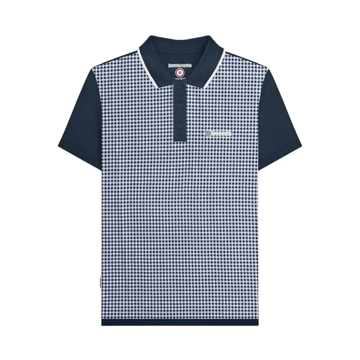 Lambretta Heren Gingham Polo Shirt Marineblauw