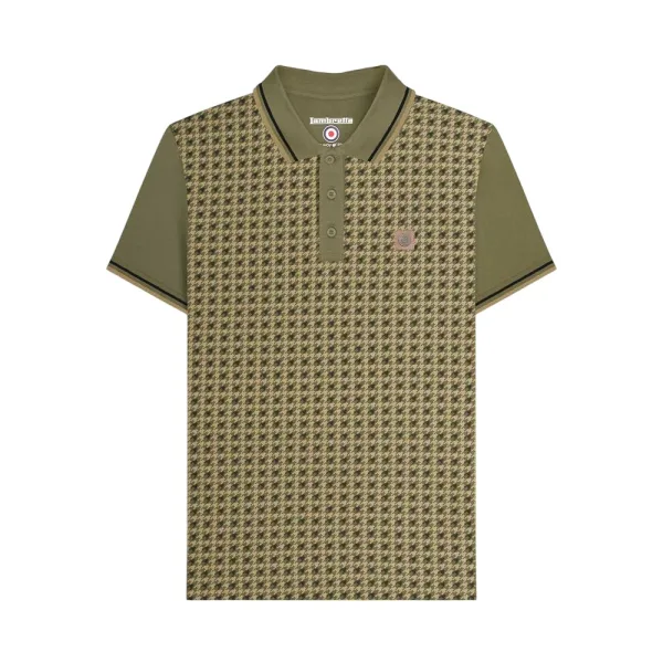 Lambretta Heren Houndstooth Polo Shirt (Khaki Groen) Prijzen