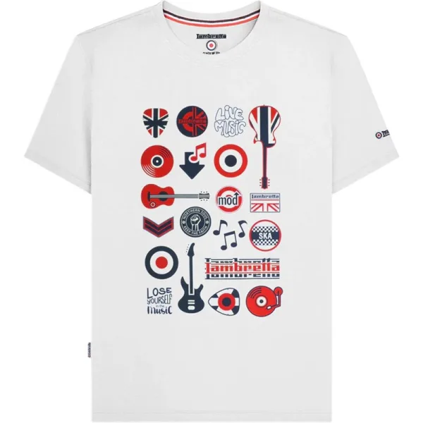 Lambretta Heren Muziek Pictogrammen T-Shirt (Wit) Prijzen