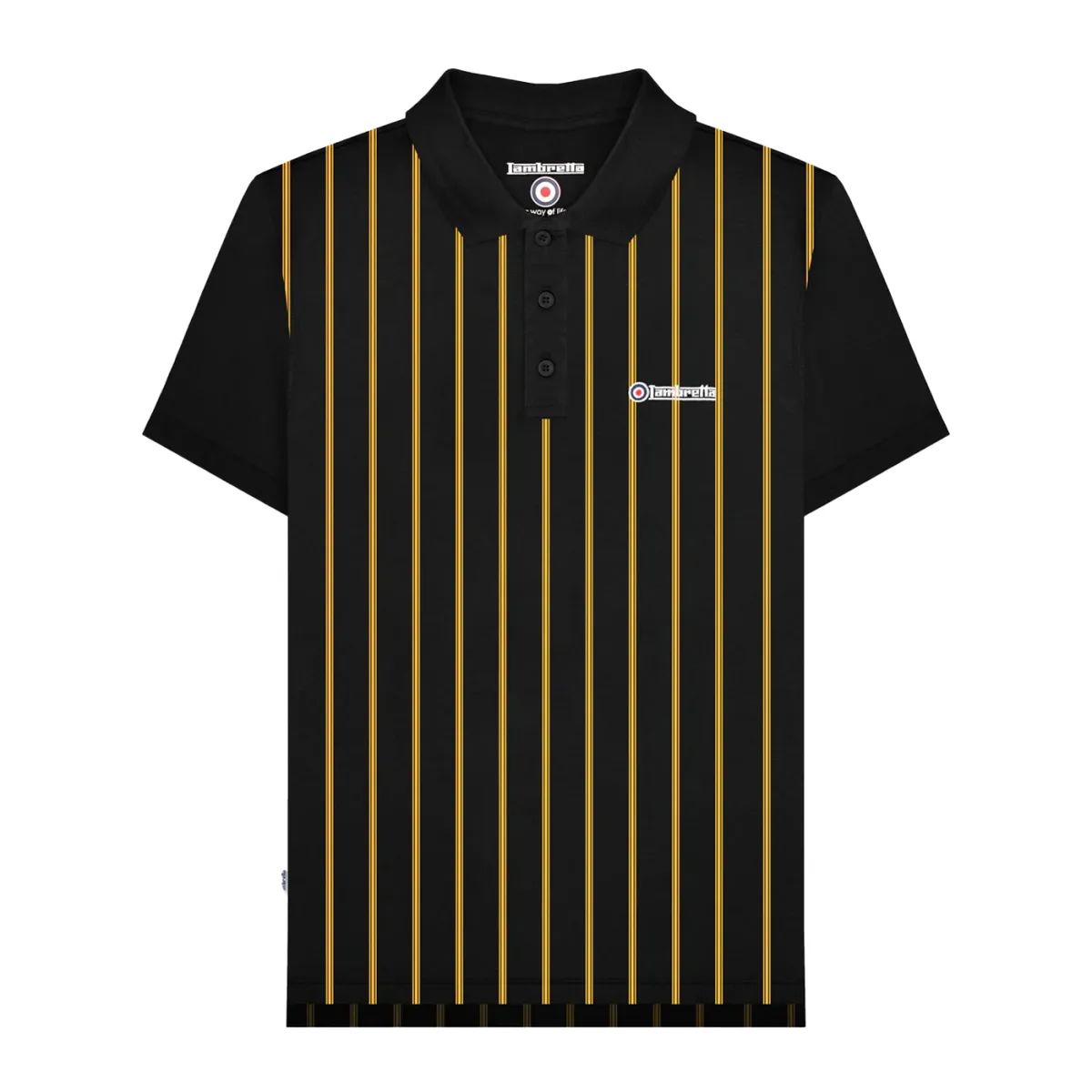 Lambretta Heren Pinstripe Poloshirt (Zwart/Goud) Prijzen