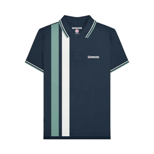 Lambretta Heren Polo met Verticale Strepen (Marine/blauwe rook) Prijzen