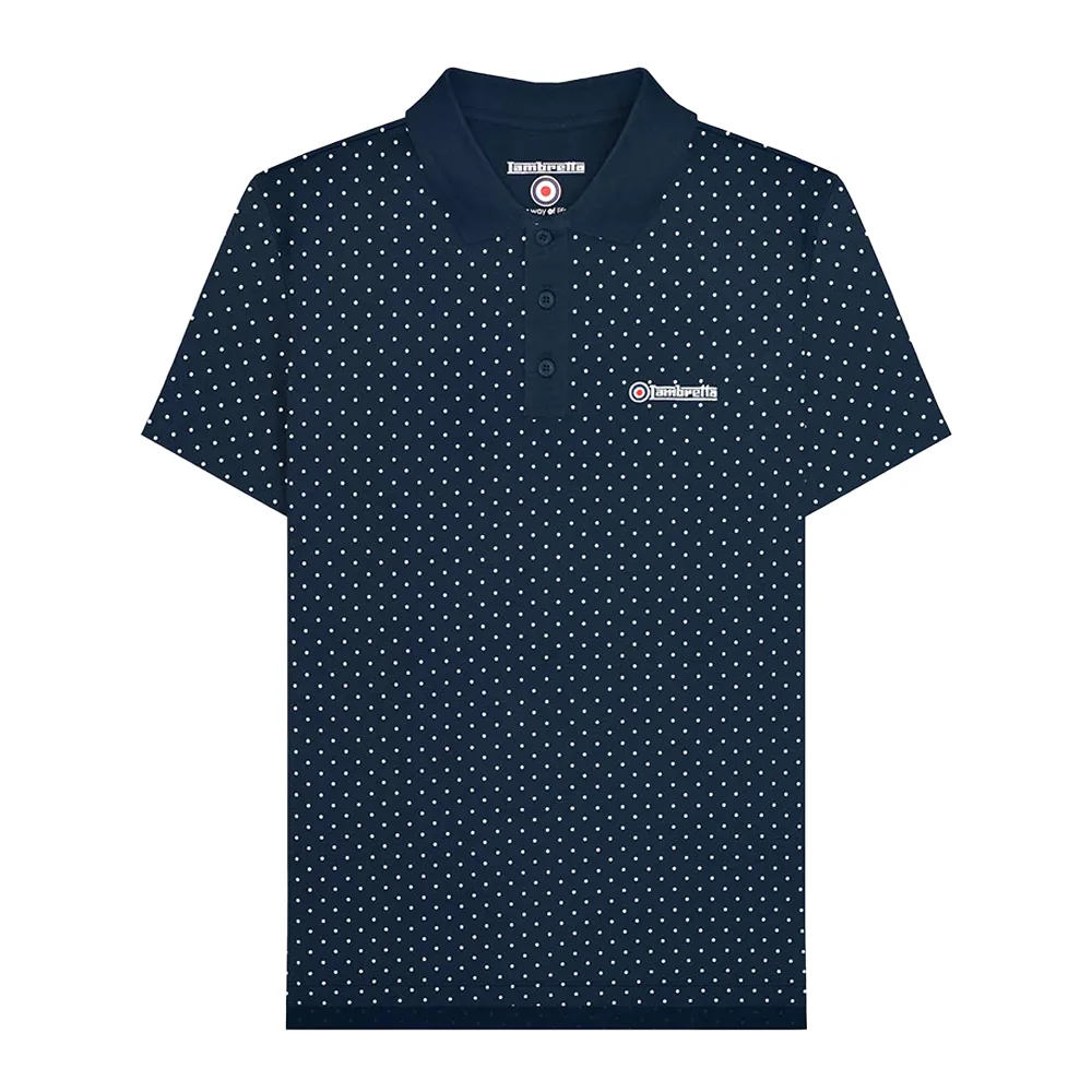 Lambretta Heren SS24 Polka Dot Poloshirt (Marine) Prijzen